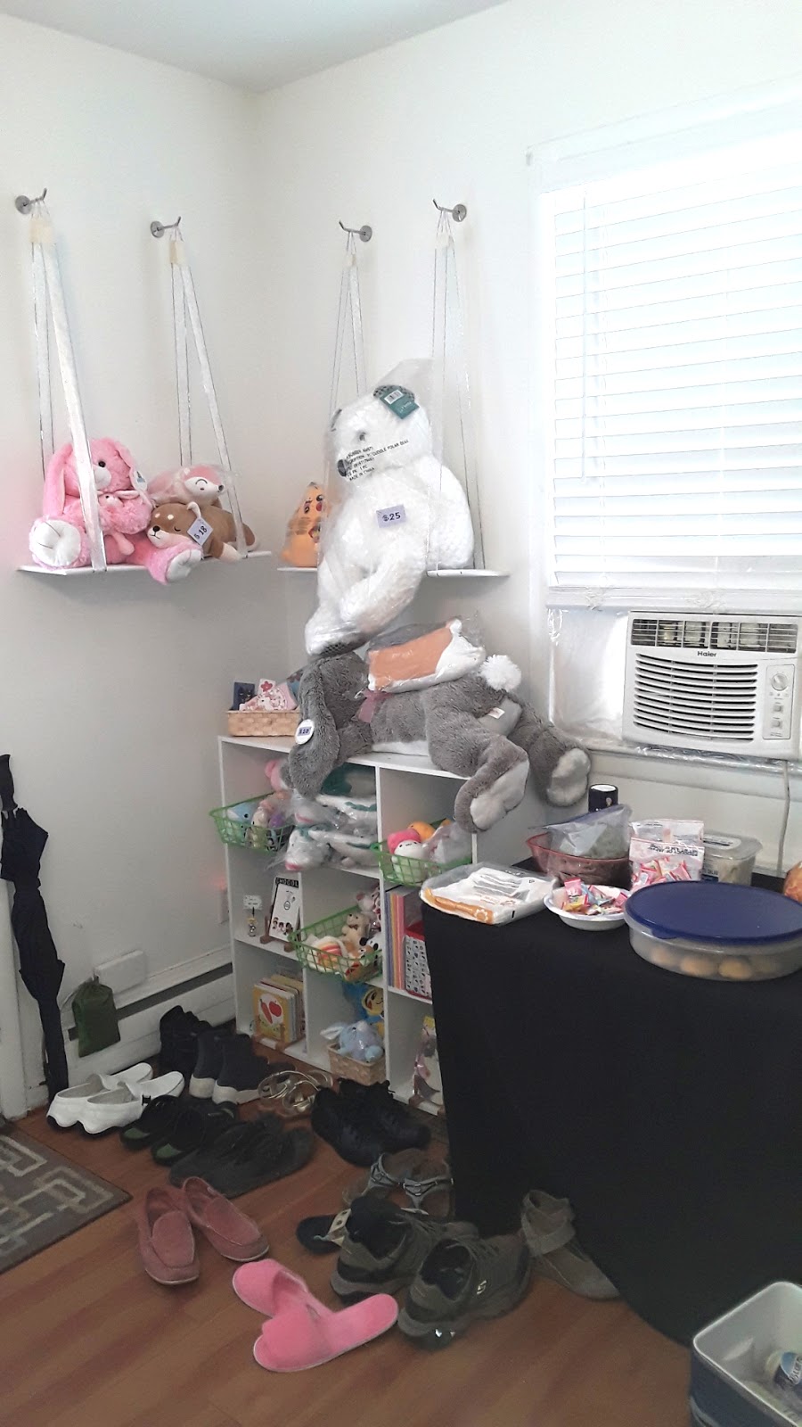 There was Japanese writing and goods on the walls, including anime アニメfigurines of some of the most famous and popular anime characters, including Studio Ghibli's Totoro となりのトトロ, Sailor Moon 美少女戦士セーラームーン, Hello Kitty キティ ホワイト, Naruto ナルト, Dragon Ball Z ドラゴンボール Z ゼット, Kumamon くまモン, and Keroppi, along with the infamous Maneki Neko 招き猫 🐱.